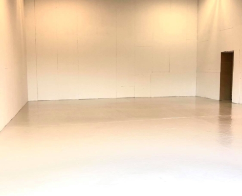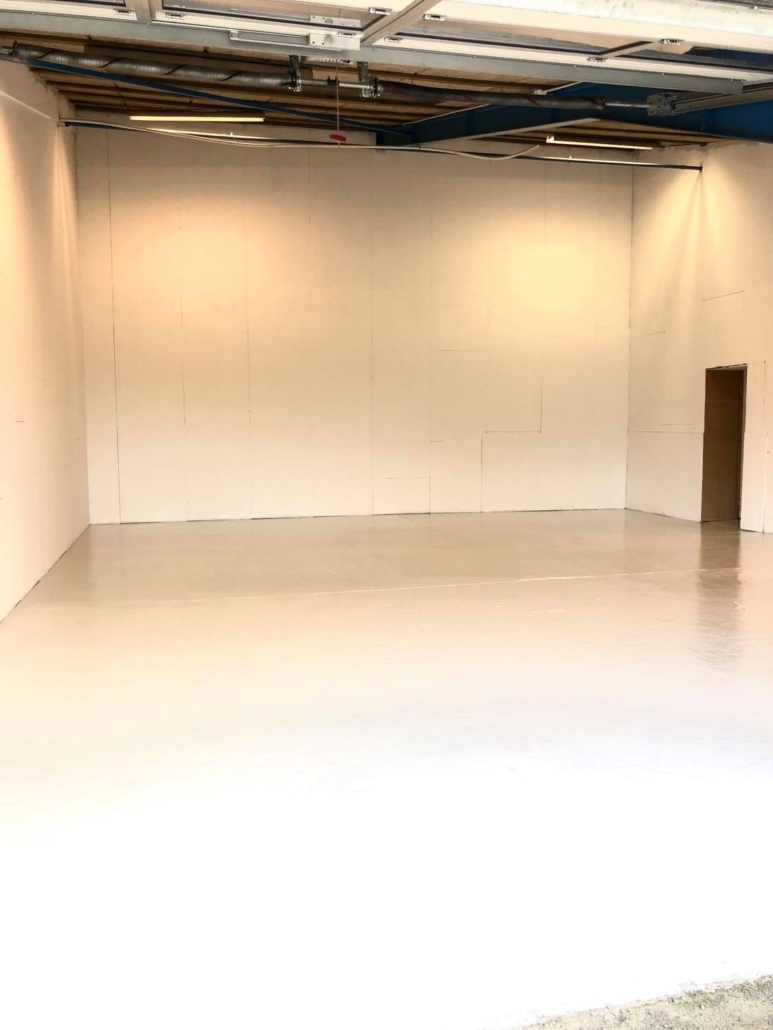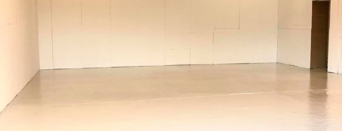Alle vægge males og gulvet får epoxy behandling, inden indflytning.